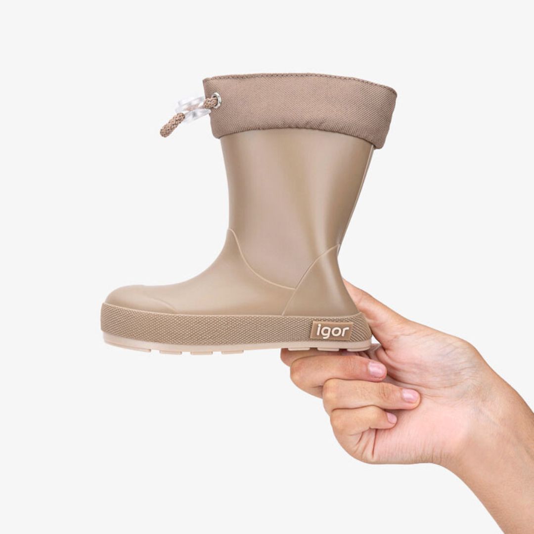 Botas de agua respetuosas de la marca Igor, modelo Yogi Dk cuello color elmwood (taupe). Tallas de la 22 a la 35.