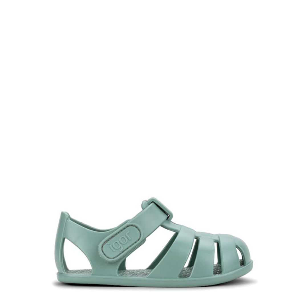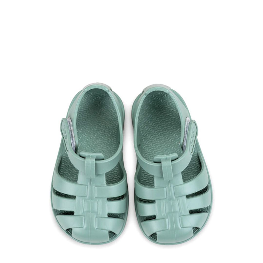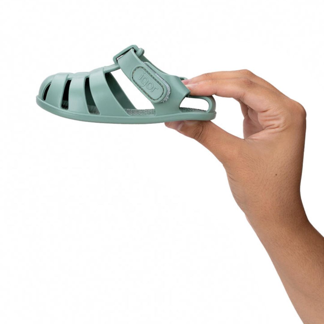 Calzado respetuoso, cangrejeras de la marca Igor, modelo Nemo en color matcha (verde). Calzado para piscinas, playas.