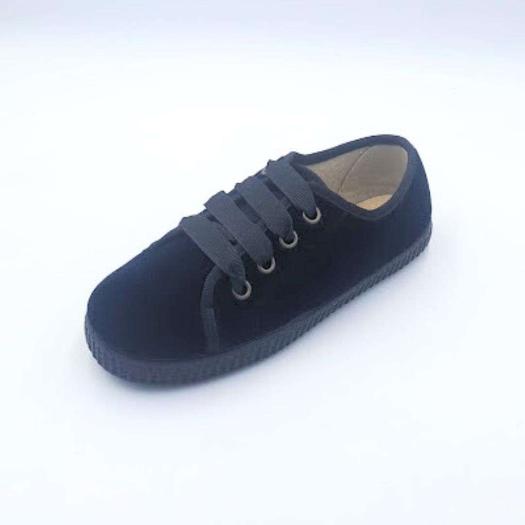 Modelo Tenis cordón falla fabricadas en terciopelo de la marca Batilas en color negro,. Piso en color negro. Tallas de la 20 a la 34. Ajuste mediante cordón (lazo falla) suela flexible.