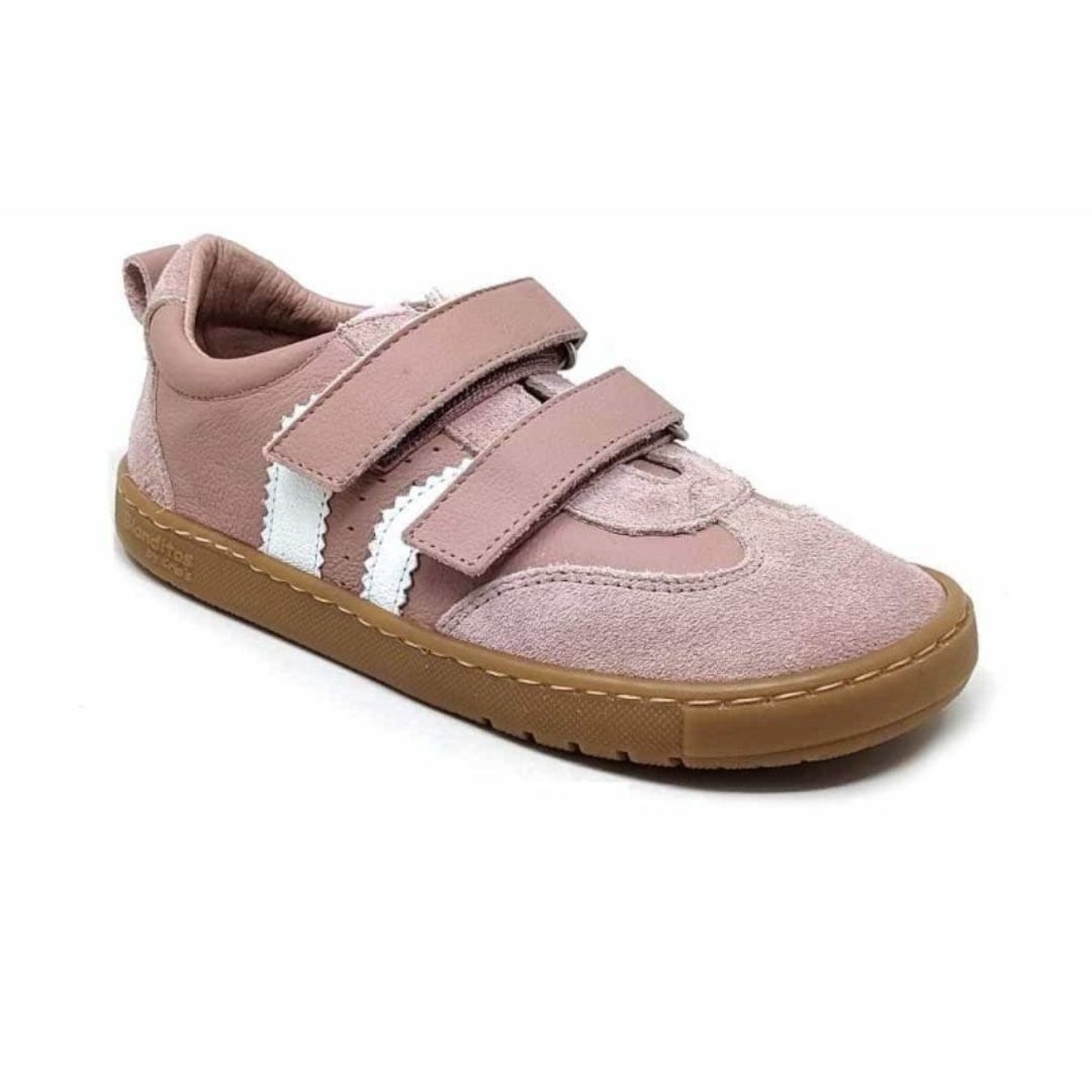 Calzado respetuoso, zapatillas de deporte de la marca Blanditos by Crios en color rosa palo con detalles en blanco, puntera en serraje rosa palo. Zapatos ideales para su uso diario, ideales para colegios . Suela en color camel.